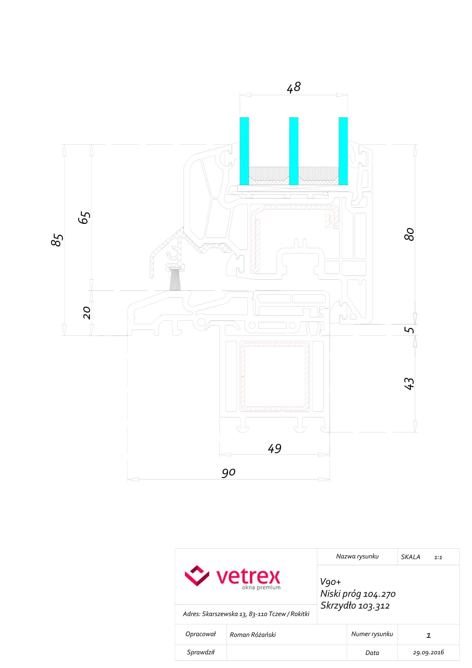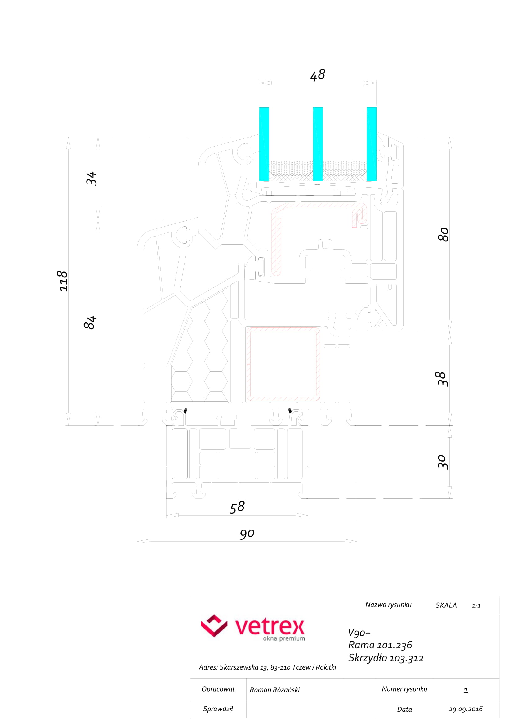 Okna skonstruowana na systemie V90+ to kompozycja, która łączy ze sobą porządny profil Veka 90mm z 6-komorowym skrzydłem i ramą (całość wyłącznie w klasie A) z wielokrotnie giętymi stalowymi wzmocnieniami w ramie grubości 1,5mm, w skrzydle grubości 1,8mm; klinem izolacyjnym w ramie okna dodatkowo zwiększającym izolacyjność cieplną, potrójnym układem uszczelek z uszczelką środkową, zgrzewem VPerfect, pakietem szybowy 4-18-4-18-4 (Ug=0,5), okuciami niemieckiego lidera firmy Roto, systemem krytych zawiasów w standardzie, ciepłymi ramkami międzyszybowymi Master Therm, które obniżają ryzyko skraplania się pary wodnej na szybie wewnątrz pomieszczenia, a także zwiększają o 6% izolacyjność cieplną całego okna; klamkami Swing Secustik; aż trzema zaczepami antywyważeniowymi w każdym skrzydle RU, mechanizmem 4 stopniowego uchyłu lub rozwarcia w skrzydłach RU, uszczelkami o wyjątkowych walorach fizycznych EPDM, mikrowentylacją oraz stabilizatorem uchyłu i listwami podparapetowymi z uszczelkami.